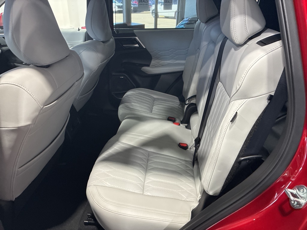 3rd row seats: split-bench, 4-Wheel Disc Brakes, 8 Speakers, ABS brakes, Accessory All-Weather Floor Mats, Accessory Black Wheel Locks & Lug Nuts, Accessory Chrome Hood Badge, Accessory Tonneau Cover, Air Conditioning, Alloy wheels, AM/FM radio: SiriusXM, Android Auto & Apple CarPlay, Auto High-beam Headlights, Auto-dimming Rear-View mirror, Automatic temperature control, Brake assist, Bumpers: body-color, Driver door bin, Driver vanity mirror, Dual front impact airbags, Dual front side impact airbags, Electronic Stability Control, Emergency communication system: Mitsubishi Connect w/ 24-month trial, Exterior Parking Camera Rear, Four wheel independent suspension, Front anti-roll bar, Front Bucket Seats, Front Center Armrest w/Storage, Front dual zone A/C, Front fog lights, Front reading lights, Fully automatic headlights, Garage door transmitter: HomeLink, Heated door mirrors, Heated Front Bucket Seats, Heated front seats, Heated rear seats, Heated steering wheel, Illuminated entry, Knee airbag, Leather Appointed Seating Surfaces, Leather Shift Knob, Leather steering wheel, Low tire pressure warning, Memory seat, Navigation System, Occupant sensing airbag, Outside temperature display, Overhead airbag, Overhead console, Panic alarm, Passenger door bin, Passenger vanity mirror, Power door mirrors, Power driver seat, Power Liftgate, Power moonroof: Panoramic, Power passenger seat, Power steering, Power windows, Radio data system, Radio: AM/FM 12.3" Navigation w/Smartphone-Link, Rain sensing wipers, Rear air conditioning, Rear anti-roll bar, Rear seat center armrest, Rear side impact airbag, Rear window defroster, Rear window wiper, Reclining 3rd row seat, Remote keyless entry, Security system, Speed control, Speed-Sensitive Wipers, Split folding rear seat, Spoiler, Steering wheel mounted audio controls, Tachometer, Telescoping steering wheel, Tilt steering wheel, Traction control, Trip computer, Turn signal indicator mirrors, Variably intermittent wipers, Welcome Package, Wheels: 20" Two-Tone Alloy.