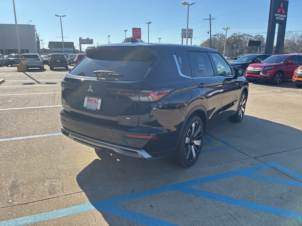 12.3" Digital Driver Display, 3rd row seats: split-bench, 4-Wheel Disc Brakes, 8 Speakers, ABS brakes, Accessory Chrome Hood Badge, Accessory Grille Paint Protection Film, Accessory Hood Paint Protection Film, Accessory Metal Cargo Scuff Plates, Accessory Reversible Cargo Mat, Accessory Tonneau Cover, Air Conditioning, Alloy wheels, AM/FM radio: SiriusXM, Android Auto & Apple CarPlay, Auto High-beam Headlights, Auto-dimming Rear-View mirror, Automatic temperature control, Brake assist, Bumpers: body-color, Compass, Delay-off headlights, Driver door bin, Driver vanity mirror, Dual front impact airbags, Dual front side impact airbags, Dynamic Sound Yamaha Ultimate, Electronic Stability Control, Emergency communication system: Mitsubishi Connect w/ 24-month trial, Exterior Parking Camera Rear, Four wheel independent suspension, Front anti-roll bar, Front Bucket Seats, Front Center Armrest w/Storage, Front dual zone A/C, Front fog lights, Front reading lights, Fully automatic headlights, Garage door transmitter: HomeLink, Heated door mirrors, Heated Front Bucket Seats, Heated front seats, Illuminated entry, Knee airbag, Leather Shift Knob, Leather steering wheel, Low tire pressure warning, Navigation System, Occupant sensing airbag, Outside temperature display, Overhead airbag, Overhead console, Panic alarm, Passenger door bin, Passenger vanity mirror, Power door mirrors, Power driver seat, Power Liftgate, Power Panoramic Sunroof, Power steering, Power windows, Radio data system, Radio: AM/FM 12.3" Navigation with Smartphone-Link, Rain sensing wipers, Rear anti-roll bar, Rear seat center armrest, Rear side impact airbag, Rear window defroster, Rear window wiper, Reclining 3rd row seat, Remote keyless entry, SE Tech Package, Security system, Speed control, Speed-Sensitive Wipers, Split folding rear seat, Spoiler, Steering wheel mounted audio controls, Synthetic Leather Seating Surfaces, Tachometer, Telescoping steering wheel, Tilt steering wheel, Traction control, Trip computer, Turn signal indicator mirrors, Variably intermittent wipers, Welcome Package, Wheels: 20" Two-Tone Alloy.