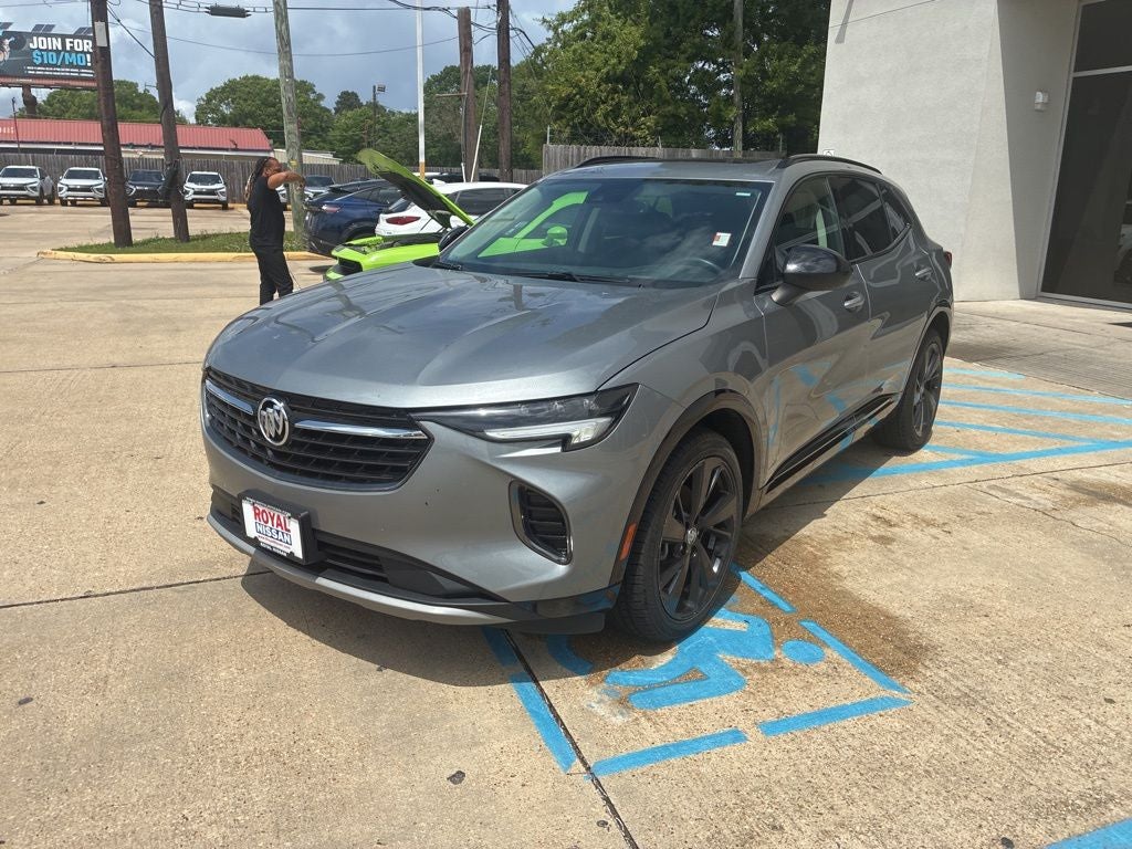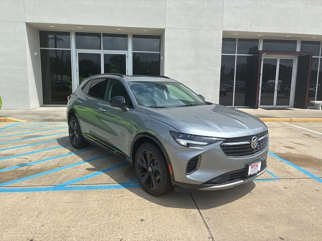 Moonstone Gray Metallic 2023 Buick Envision Essence FWD 9-Speed Automatic 2.0L Turbocharged 3.47 Final Drive Axle Ratio, 4-Wheel Disc Brakes, 7 Speakers, 7-Speaker Audio System Feature w/Amplifier, 8-Way Power Driver Seat Adjuster, ABS brakes, Air Conditioning, Alloy wheels, AM/FM radio: SiriusXM, Apple CarPlay/Android Auto, Auto High-beam Headlights, Auto-dimming door mirrors, Auto-dimming Rear-View mirror, Automatic Emergency Braking, Automatic temperature control, Black Roof Rails, Body-Color Door Handles, Brake assist, Bumpers: body-color, Cargo Area Tray (LPO), Carpeted Front & Rear Floor Mats, Compass, Delay-off headlights, Deleted 3 Years of OnStar & Connected Services Plan, Driver door bin, Driver vanity mirror, Dual front impact airbags, Dual front side impact airbags, Electronic Stability Control, Emergency communication system: OnStar and Buick connected services capable, Following Distance Indicator, Forward Collision Alert, Four wheel independent suspension, Front anti-roll bar, Front Bin Center Console USB Ports, Front Bucket Seats, Front Center Armrest, Front dual zone A/C, Front Passenger 8-Way Power Seat Adjuster, Front Pedestrian Braking, Front reading lights, Fully automatic headlights, Heated door mirrors, Heated Driver & Front Passenger Seats, Heated front seats, Heated steering wheel, Illuminated entry, IntelliBeam Headlamp Control w/Auto High Beam, Knee airbag, Lane Keep Assist w/Lane Departure Warning, Low tire pressure warning, Lower Trim/Wheel Arch Moldings, Memory seat, Not Equipped w/Lane Change & Rear Cross Traffic Alerts, Not Equipped w/Rear Park Assist, Occupant sensing airbag, Outside temperature display, Overhead airbag, Overhead console, Panic alarm, Passenger door bin, Passenger vanity mirror, Perforated Leather-Appointed Seat Trim, Power door mirrors, Power driver seat, Power Liftgate, Power Panoramic Tilt-Sliding Moonroof, Power passenger seat, Power steering, Power windows, Preferred Equipment Group 1SL, Premium audio system: Buick Infotainment System, Radio data system, Radio: Buick Infotainment System AM/FM Stereo, Rear anti-roll bar, Rear Cargo Compartment Cover, Rear reading lights, Rear seat center armrest, Rear window defroster, Rear window wiper, Remote keyless entry, Security system, SiriusXM Radio, Speed control, Split folding rear seat, Spoiler, Sport Alloy Pedals, Sport Touring Package, Steering wheel mounted audio controls, Telescoping steering wheel, Tilt steering wheel, Traction control, Trip computer, USB Charging-Only Ports, Variably intermittent wipers, Wheels: 18 Machined Aluminum w/Light Silver Met, Wheels: 20 Aluminum w/Dark Finish, Wireless Apple CarPlay/Wireless Android Auto.